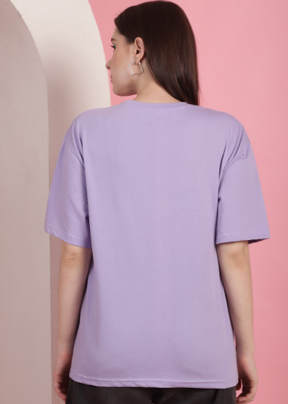 1 Lavender t-shirt for women Graphic Regular length Round Neck Short Sleeves Knitted